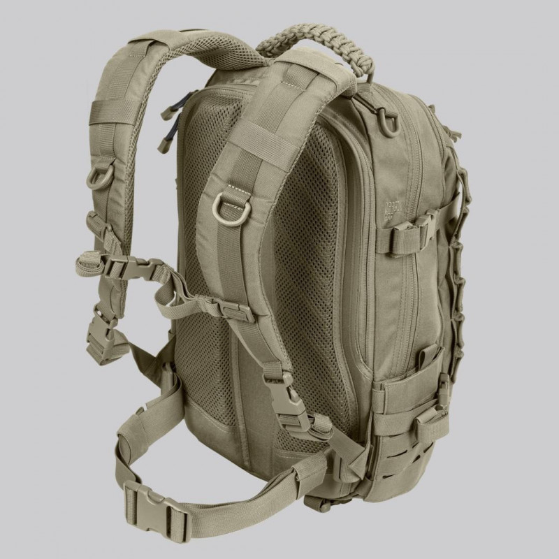 A Dragon Egg® da Direct Action® é uma mochila com capacidade de 25 litros para tarefas de patrulha curta ou uso de EDC (Every-Day-Carry). O pacote possui dois bolsos de bexiga de hidratação - um no compartimento principal e adicional na parte traseira com zíper. O bolso traseiro, graças à capa acolchoada, pode ser usado para transportar com segurança dispositivos de rádio multibanda ou notebook (15 ''). O bolso frontal da Dragon Egg® possui um bolso de malha com zíper e organizador simples para pequenos itens essenciais. Bolsos laterais adicionais podem transportar itens pequenos e planos, após descompactar a cantina padrão dos EUA. O sistema cortado a laser, compatível com MOLLE / PALS, torna a mochila não apenas totalmente modular, mas também mantém a aparência de baixo perfil. Graças à forma do ovo, o pacote tem menor altura e largura do que outros pacotes com capacidade semelhante e torna-o mais confortável com kits de cinto ou coletes balísticos. O sistema de suspensão é baseado em cintas de ombro confortáveis e reforço interno nas costas. Feito de tecido de nylon durável 500D Cordura® com revestimento resistente à água.