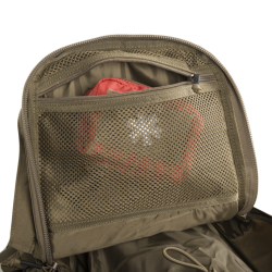 A mochila Raccoon Mk2® possui um bolso externo do mesmo tamanho do compartimento principal. No interior, existe um organizador simples para transportar itens adicionais. A câmara principal possui um bolso interno plano e um suporte para CamelBak. Para cargas pesadas, o cinto abdominal de fita distribui o peso adequadamente, enquanto as alças permitem descarregar rapidamente a carga. A parte externa é coberta por fitas compatíveis com o sistema MOLLE/PALS. O elástico permite prender equipamentos adicionais, como casacos, colchões, etc. Na parte inferior, existem duas fitas de compressão. O layout completamente redesenhado, os materiais utilizados e a alta qualidade tornam a Raccoon uma mochila ideal tanto para operações especiais como para uso diário. Tamanho do painel de gancho e argola: 12 x 7,5 cm.