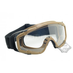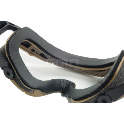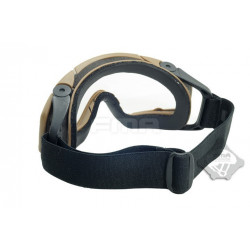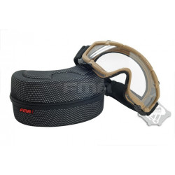 Oculos balisticos Desert com caixa e duas lentes (escura e transparente). Ajuste por fita elástica. Lente em policabornato.