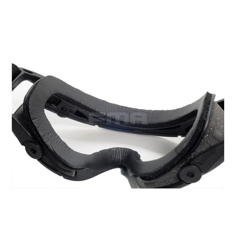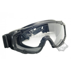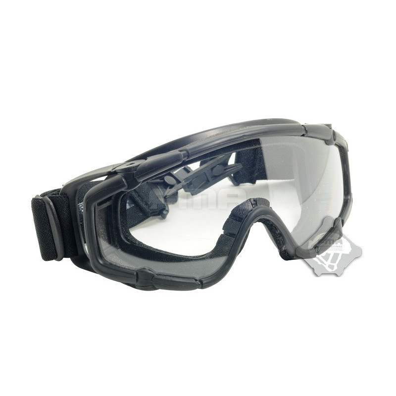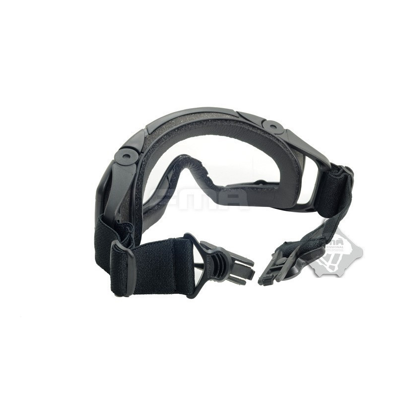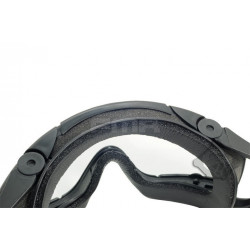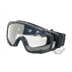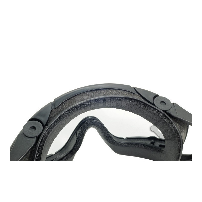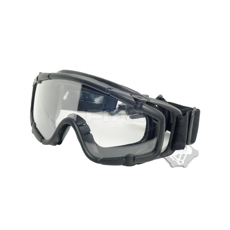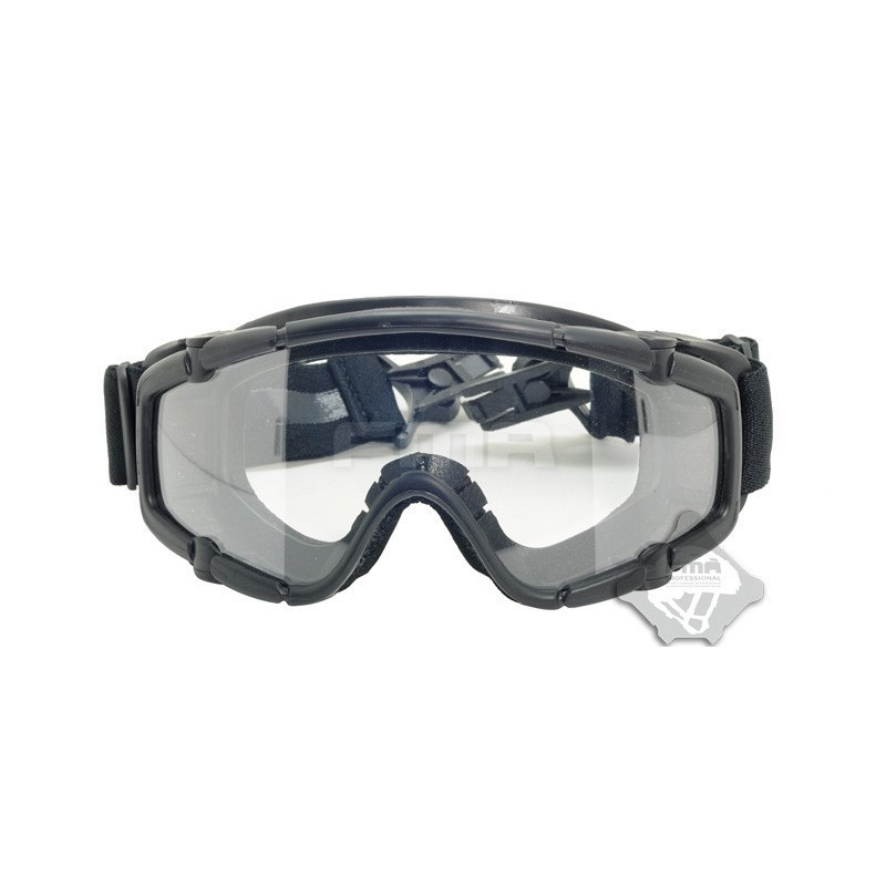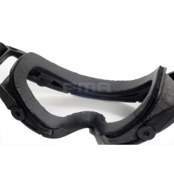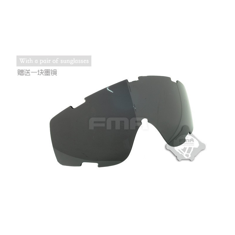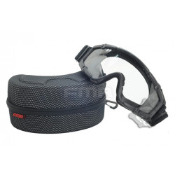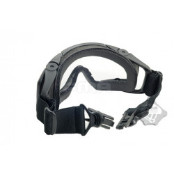 Oculos balisticos Desert com caixa e duas lentes (escura e transparente). Ajuste por fita elástica. Lente em policabornato. A fita tem encaixe para capacetes FMA ou equivalente.