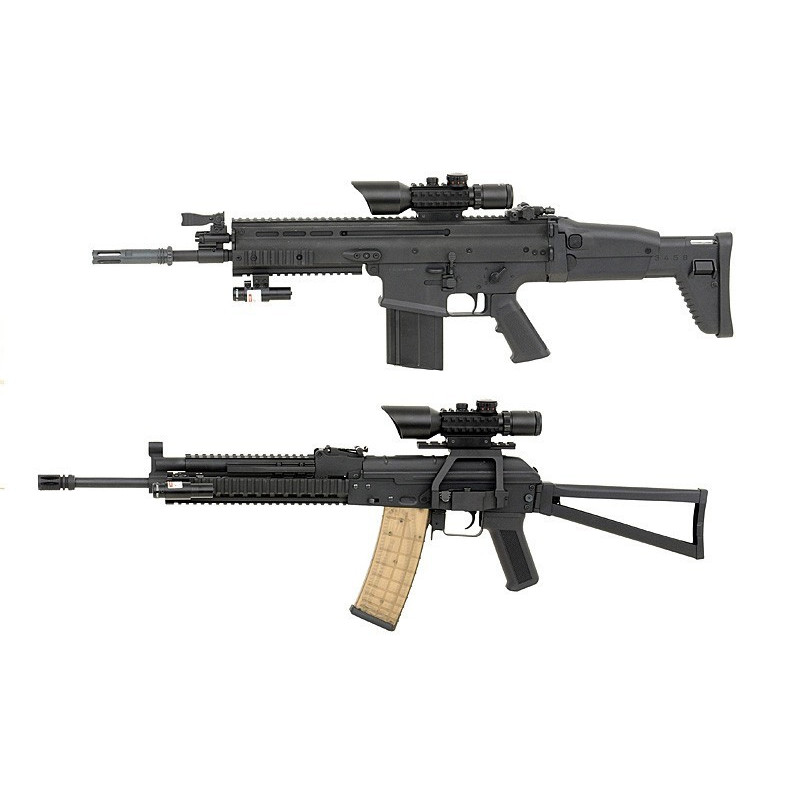 * Instrumento de pontaria: cruz iluminada (vermelho / verde)