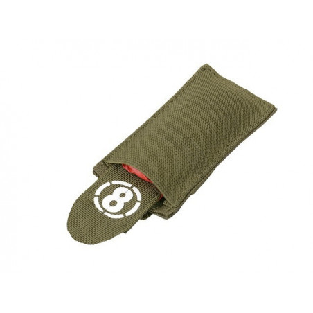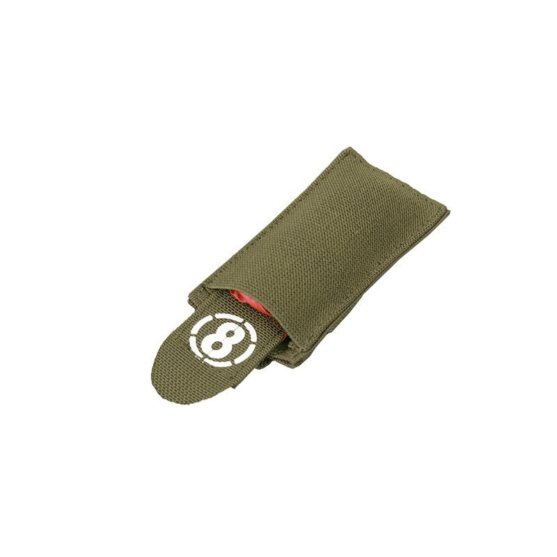 Pano vermelho, para mostrar que os jogadores foram atingidos, está integrado com a bolsa e pode ser colocado no capacete ou na engrenagem do molle.