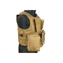 O colete FSBE oferece mais proteção e personalização. Contém placas de proteção frontal e traseira, também protege lateralmente. Todas as bolsas estão fixas pelo sistema MOLLE, não são permanentes e podem ser trocadas se necessário.