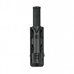 Polímero por injecção em molde. Inclinação ajustável com parafusos. Clip de fixação ao cinto. Compatível com o diâmetro da lanterna mais popular +/- 3,3 cm.