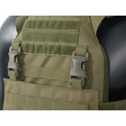 Vem com painel frontal MOLLE removível montado por 2 clipes e velcro forte. Este sistema permite-lhe remover rapidamente o painel e substituí-lo por uma vasta gama de bolsas multiusos ou equipamentos para o peito. Agora você pode se preparar em poucos segundos, dependendo do equipamento que você precisa. Apresenta também 2 bolsos de acesso fácil para placas padrão, alças de ombro acolchoadas ajustáveis e cummerbund. As faces internas do suporte da placa são forradas com tecido de malha de ar respirável. As bolsas podem ser montadas num painel frontal e externo (tela PALS) do cummerbund. Inserções balísticas fictícias incluídas e painel frontal MOLLE. Compatível com placas para crossfit (vendidas à parte)