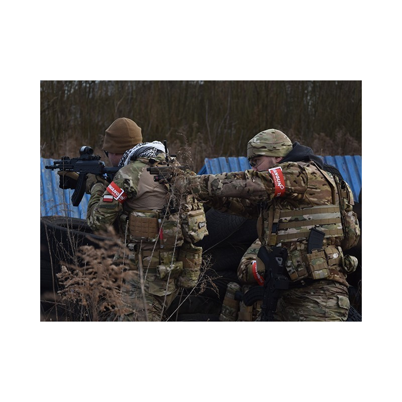 Bolsas podem ser montadas dentro e fora (correias PALS) do cummerbund. Placas SAPI fictícias macias incluídas.