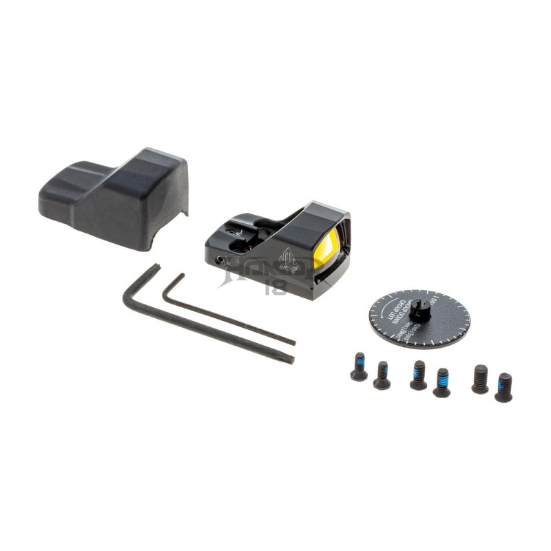Projetada pela Leapers, esta mira reflexa leve é um avanço lógico em miras de armas de fogo e aquisição de alvos. Uma companheira útil e confiável acoplada a pistolas e submetralhadoras compactas. A mira reflexiva é feita de liga de alumínio de alta qualidade e anodizada em um revestimento fosco. Este ponto vermelho do tamanho de uma pinta pesa 40g com dimensões de 40x24x22mm, colocando-o na classe óptica de tamanho micro. Uma classificação IPX7 o torna à prova de água e choque. A pegada RMSc integrada garante montagem sólida e retenção zero intransigente. Uma mira de ferro traseira fresada foi integrada para 1/3 Co-Witness com a maioria das miras de ferro de altura padrão. O vidro da lente de 24 mm é coberto com multirrevestimento resistente a arranhões. O red dot de tamanho 3 MOA está disponível com um sistema de ajuste automático de brilho. A Reflex Mini Sight garante aquisição de alvo rápida e precisa. Uma única bateria CR2032 alimenta a mira, proporcionando um tempo de funcionamento de até 30.000 horas. O conjunto inclui uma capa de borracha, uma ferramenta de ajuste, um conjunto de parafusos e chaves.