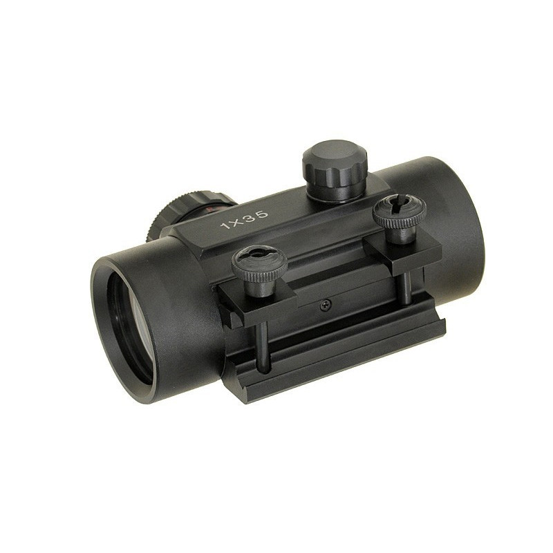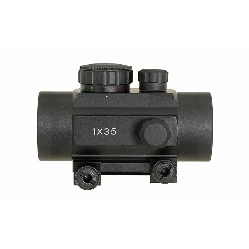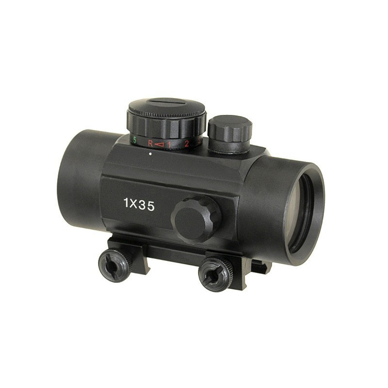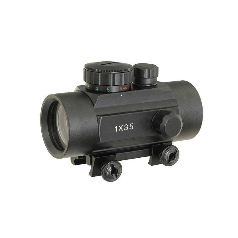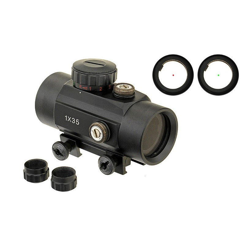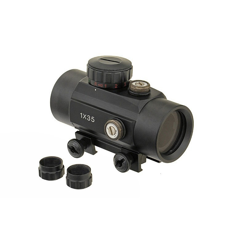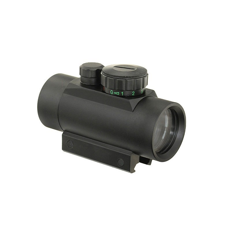 O ponto alvo tem duas cores de iluminação (verde e vermelho) com brilho ajustável de 5 intensidades.