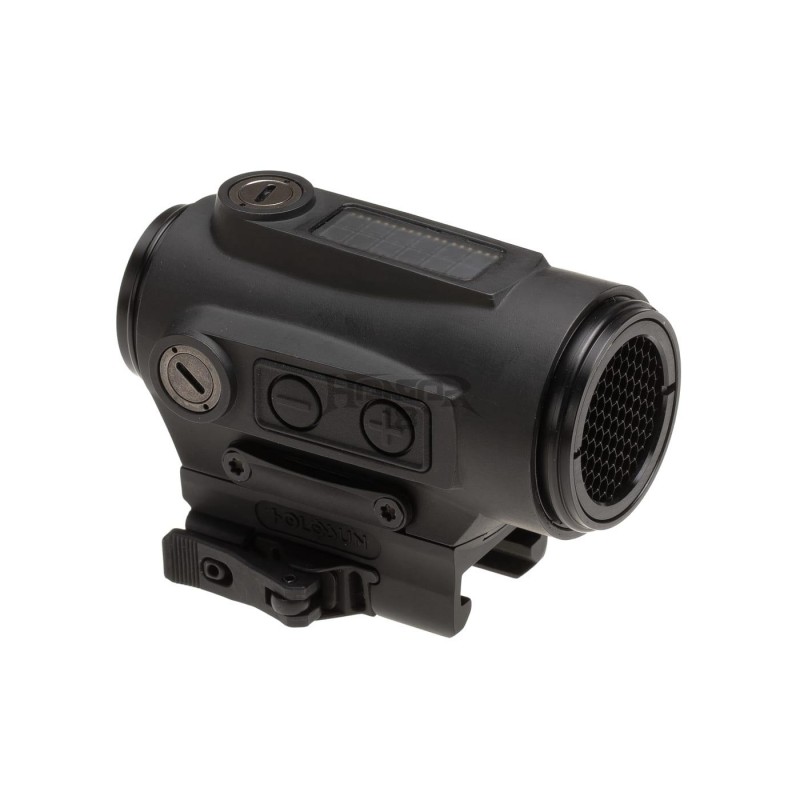 Mira de ponto verde fechada de tamanho compacto feita pela Holosun. Usinado em CNC a partir de titânio anodizado com revestimento preto fosco, esta mira de tamanho compacto pesa 259g e tem dimensões de 84x60x40mm. Uma classificação IPX8 a torna à prova d'água e de choque até 1000 G. O vidro da lente de 30 mm é coberto com multirrevestimento antirrisco e antirreflexo. Ponto verde de 2 MOA e um círculo de tamanho 65 com um valor de ajuste de 1/2 MOA estão disponíveis. Um LED fornece dois modos NV e dez níveis de brilho. Sem paralaxe, alívio ocular ilimitado e 50 MOA de alcance de ajuste de deriva e elevação, o HE530C-RD garante aquisição de alvo rápida e precisa em todas as condições climáticas e de luz. A energia é fornecida por uma única bateria CR2032 em uma bandeja fixada por parafusos, dando a ela um tempo de execução de 50.000 horas em uma configuração de brilho de ponto médio. Ele também possui controles emborrachados e um sistema "Shake Awake" que ajuda a conservar a bateria. O painel solar adicional na parte superior e o sistema "Solar Failsafe" amplificam as configurações de brilho. O conjunto inclui um suporte QD, um suporte Absolute Co-Witness, um pano de limpeza e chaves de instalação.