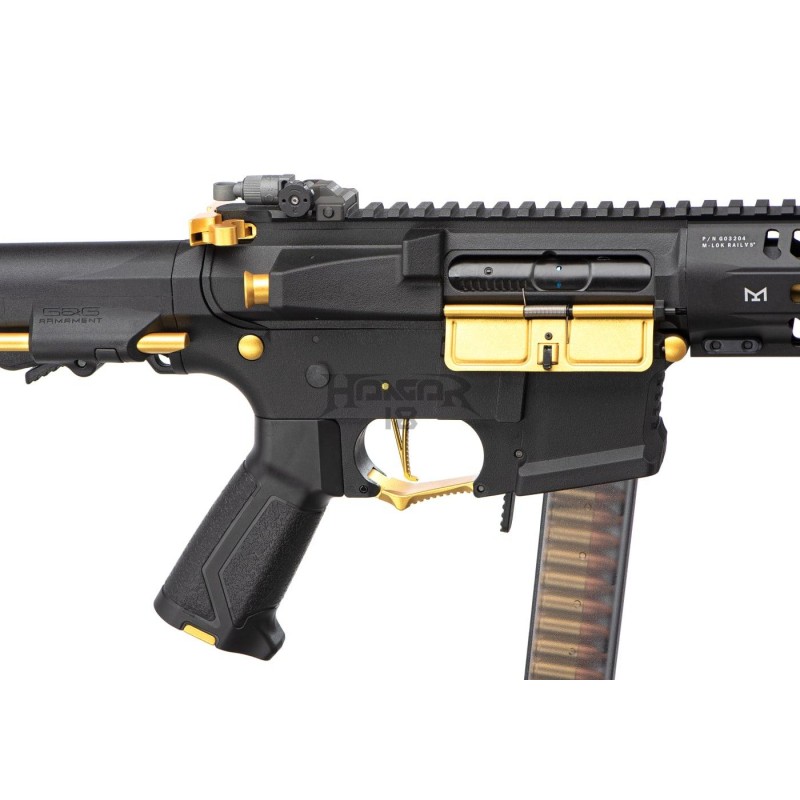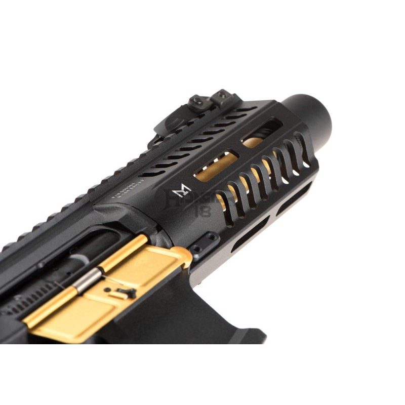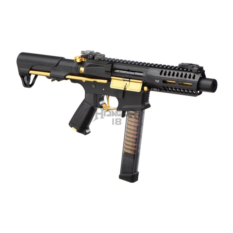 Projetado e fabricado pela G&G, o ARP 9 é uma réplica de alta qualidade desenvolvida no projeto Combat Machine. A ideia principal da CM era entregar um modelo acessível, mas ainda fornecendo uma alta qualidade de mecanismos internos e o uso dos melhores materiais possíveis disponíveis. Esta réplica de 510/600 mm de comprimento é alimentada por um carregador de média capacidade, pesa cerca de 2.000 g e dispara em modo semiautomático ou totalmente automático. A réplica é feita principalmente de polímeros de alta qualidade reforçados com fibra de vidro, tornando-a leve, mas altamente durável. O cano externo, a tampa contra poeira, a alça de carregamento e outros elementos menores são usinados em metal. O cano é equipado com uma rosca CCW de 14 mm e pode receber diferentes dispositivos de focinho, supressores e rastreadores. A coronha retrátil feita de polímero de alta qualidade é confortável de usar. Também é fácil de manusear em espaços confinados e simples de guardar. A bateria é colocada dentro do tubo de buffer. Na frente, podemos encontrar um protetor de mão MLOK de polímero com um trilho RIS na parte superior. Esta configuração permite que o usuário conecte diferentes acessórios adequados à sua preferência ou requisitos de missão. Graças aos materiais econômicos e ao alto desempenho, o ARP 9 é a escolha ideal para novos jogadores e veteranos que buscam uma réplica de primeira classe em uma faixa de preço razoável.