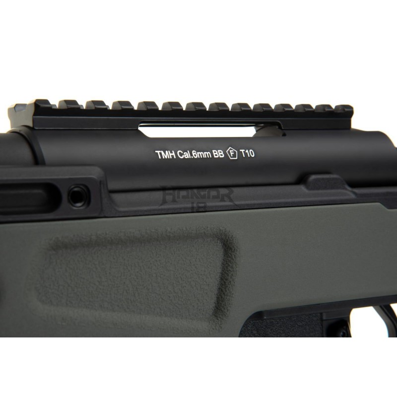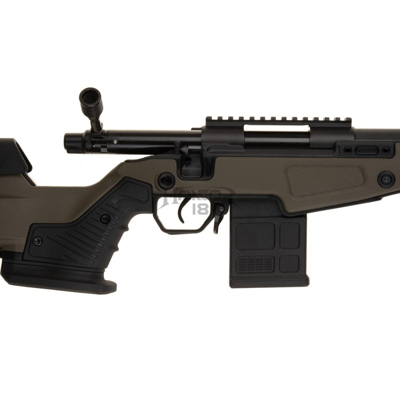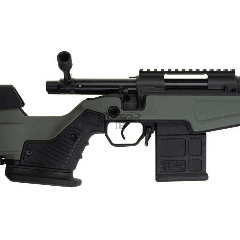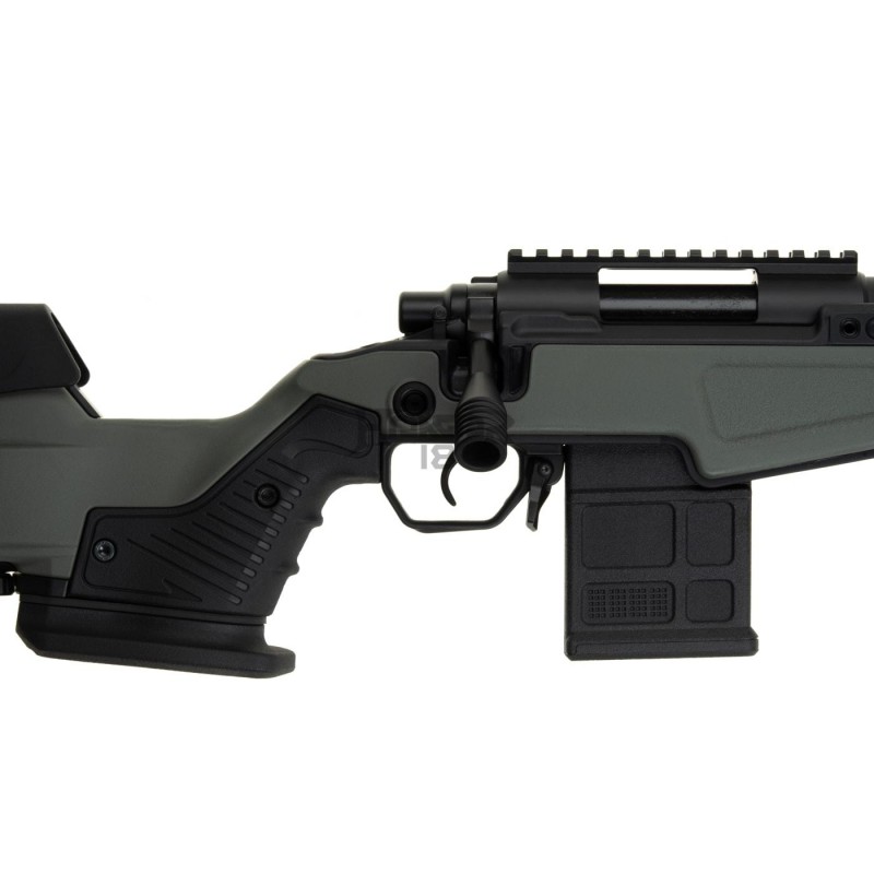 Essas características combinadas com o punho ergonômico estilo prateleira permitem que o usuário faça o tiro de forma confortável. A equipe do Action Army pensou ainda mais em como aumentar a precisão deste rifle e implementou um gatilho ajustável para aqueles tiros longos de precisão.