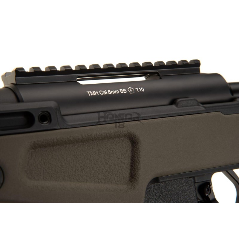 O T10 também possui rosca de 16 mm CW / 27 mm CCW na parte lateral do cano, carregador estendido fictício que pode ser usado como armazenamento para carregador adequado e pontos de montagem QD.