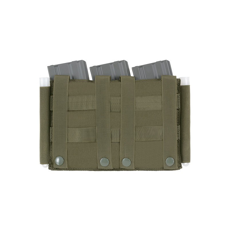 A bolsa leve pode levar 3x M4 / AR-15 / M16 / ACR / FAMAS / SCAR-L / TAVOR / SA80 / Galil / Type 89 / F2000 / AUG (polímero ou metal), ou outros itens de tamanho semelhante (por exemplo, flashbangs) e é compatível com todas as plataformas MOLLE. Material elástico especial fornece recarga rápida e transporte seguro.