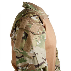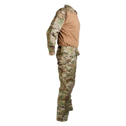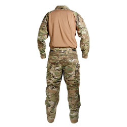 O uniforme de combate T.C.U inclui uma combat shirt e calças com joelheiras no padrão Multicam.