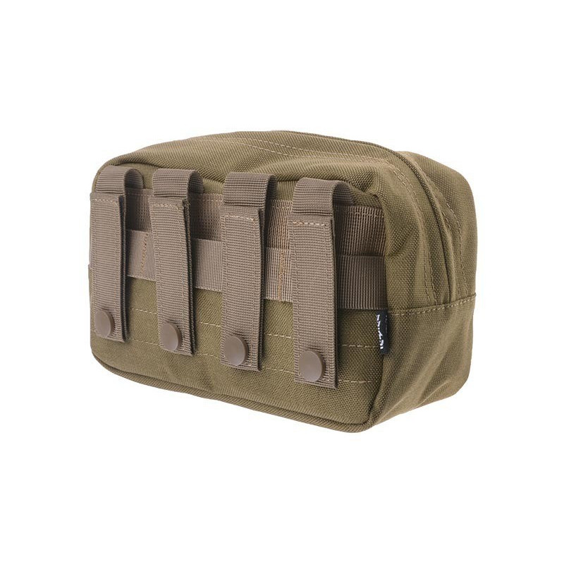 Uma pequena bolsa Cargo horizontal feita de Nylon 1000D durável pela Primal Gear. A bolsa pode ser fixada a um equipamento usando 4 tiras MOLLE localizadas na parede posterior da bolsa. A frente da bolsa apresenta uma superfície de montagem MOLLE adicional para bolsas ou acessórios adicionais. A bolsa possui um zíper duplo.